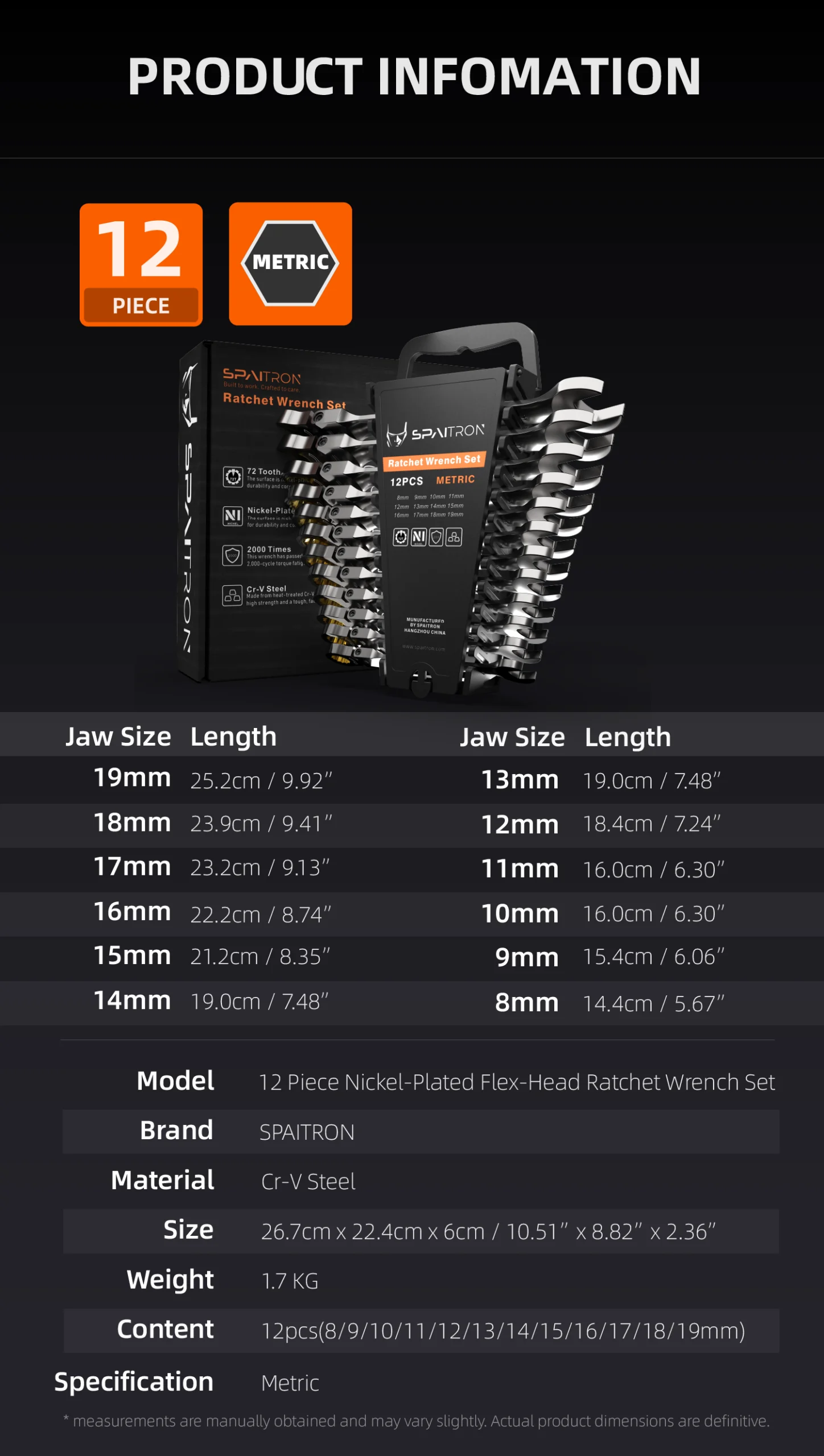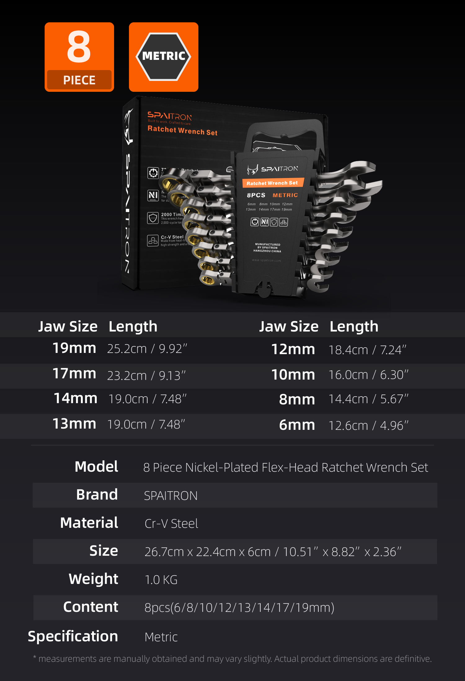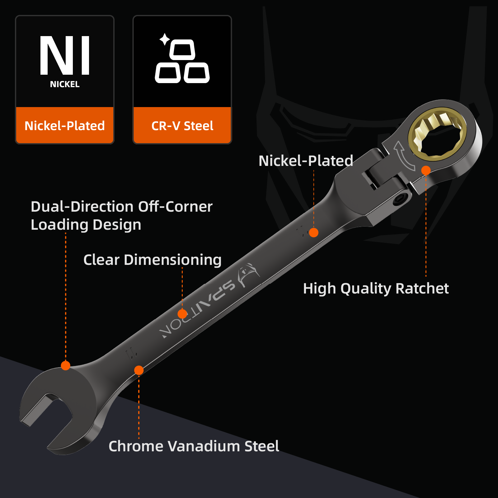 Upgrade your toolbox with the SPAITRON Heavy Duty Flex-Head Ratchet Spanner Set. Available in 12-Piece and 8-Piece professional sets, these tools combine precision engineering with premium durability for car engines, furniture assembly, and DIY projects.