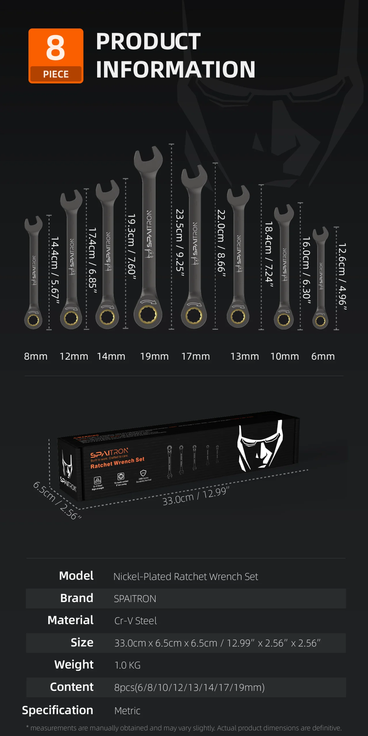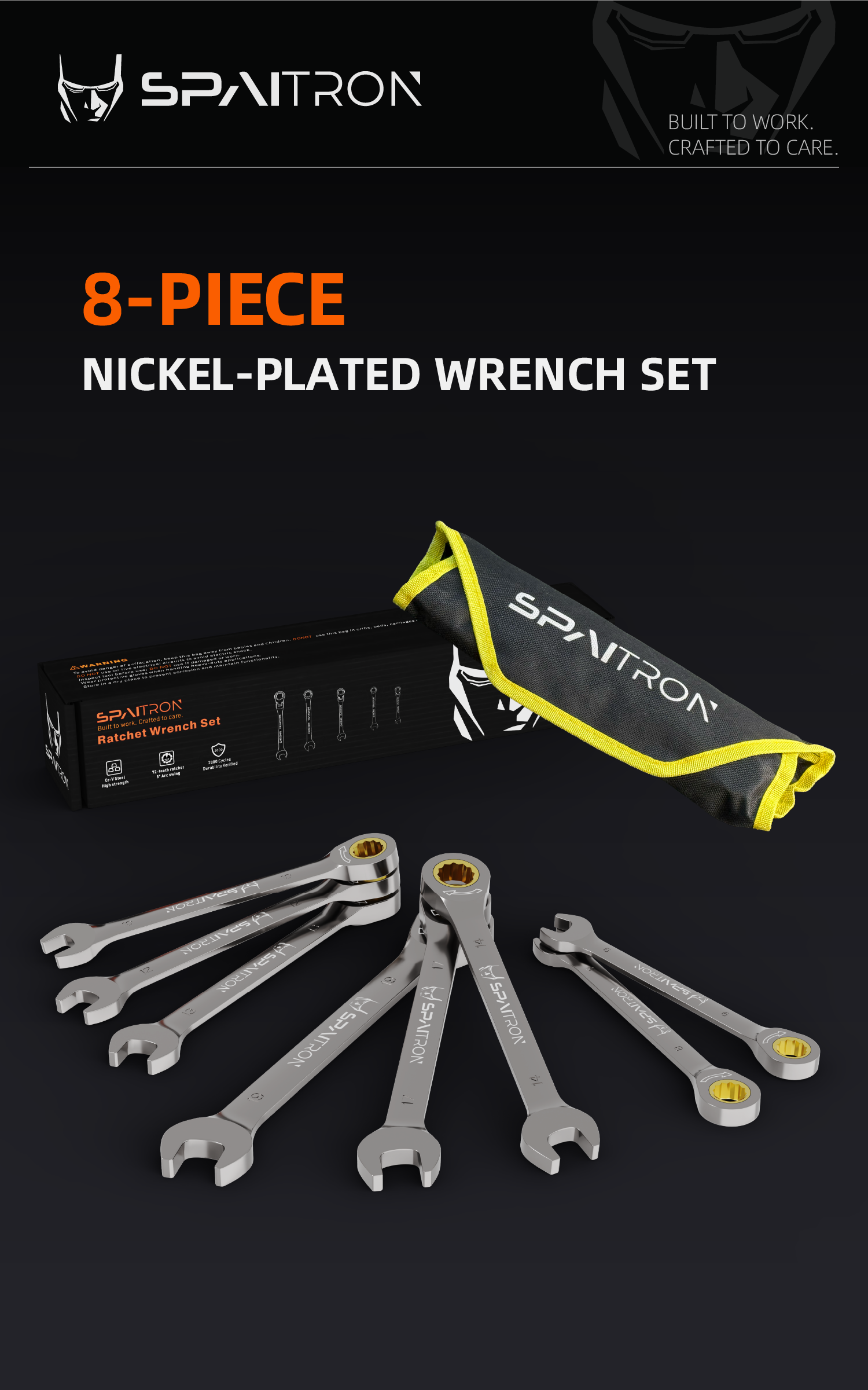Upgrade your toolbox with the SPAITRON 8-Piece Heavy Duty Ratchet Spanner Set. Whether you are fixing a car engine or assembling furniture, this set combines professional precision with premium durability.
