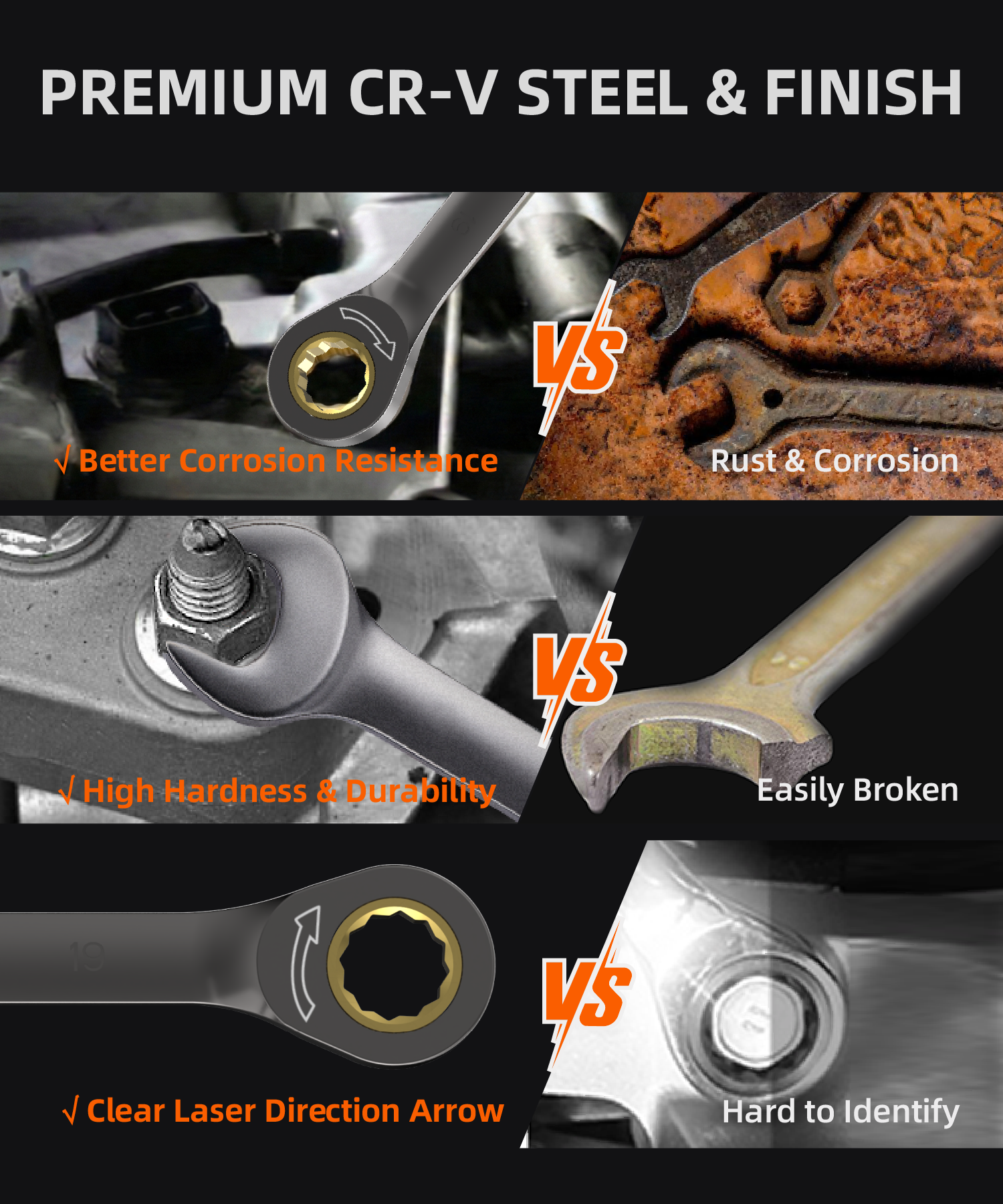 - 💪 Heavy Duty Cr-V Steel: Forged from heat-treated Chrome Vanadium Steel for maximum torque and long-lasting hardness.