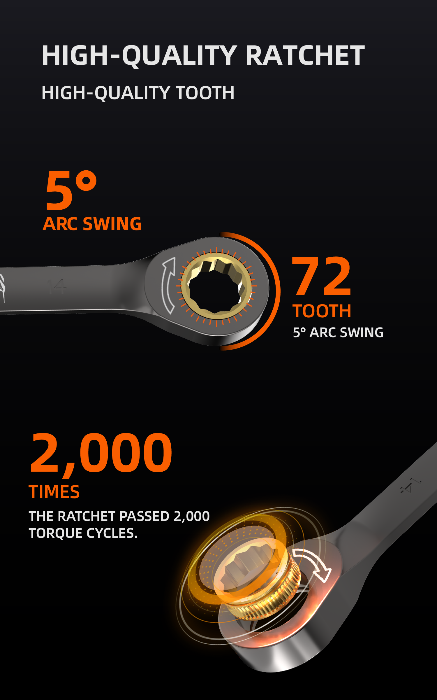 🔧 72-Zahn-Präzisionsgetriebe: Die Ratsche mit hohem Drehmoment benötigt nur einen 5°-Schwenkbereich, was sie perfekt für enge Räume macht, in denen gewöhnliche Schraubenschlüssel einfach nicht bewegt werden können.